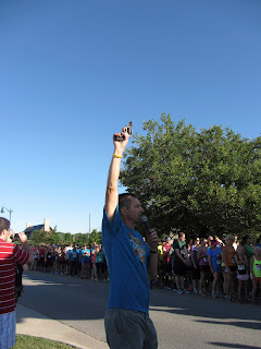 Last Saturday Chris and I ran in the Bentonville Cancer Challenge. I ran the 5k and he did the 10k. I wanted to run this race in honor of two of my coworkers who have cancer right now and in memory of my coworker Cindy who passed away last year from pancreatic cancer. I was really nervous about running this race because it was a timed event. Another reason I was worried was I was afraid it was going to be really hot. But thankfully a cool front came in and it cooled it down so it was in the 60s. When I started running it was in winter and I'm use to running in cold weather. The heat just kills me when I try to run for long distances. It seems like I can only run for 15 minutes before I have to stop. I know I have to keep building up my endurance to it.
